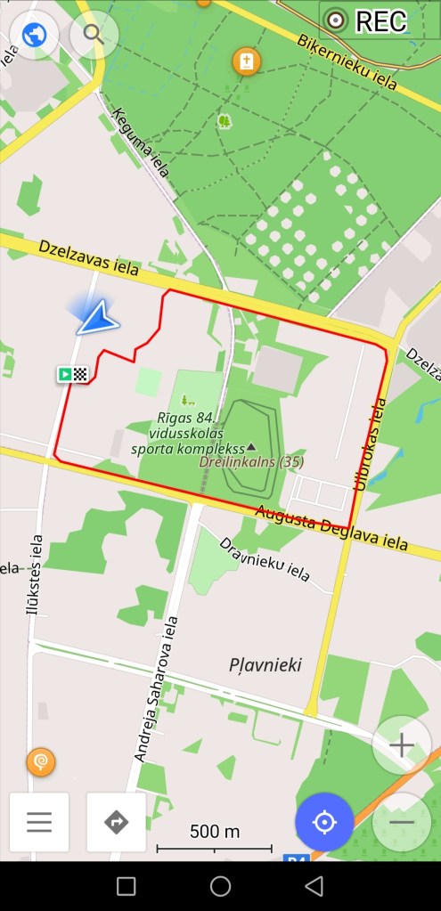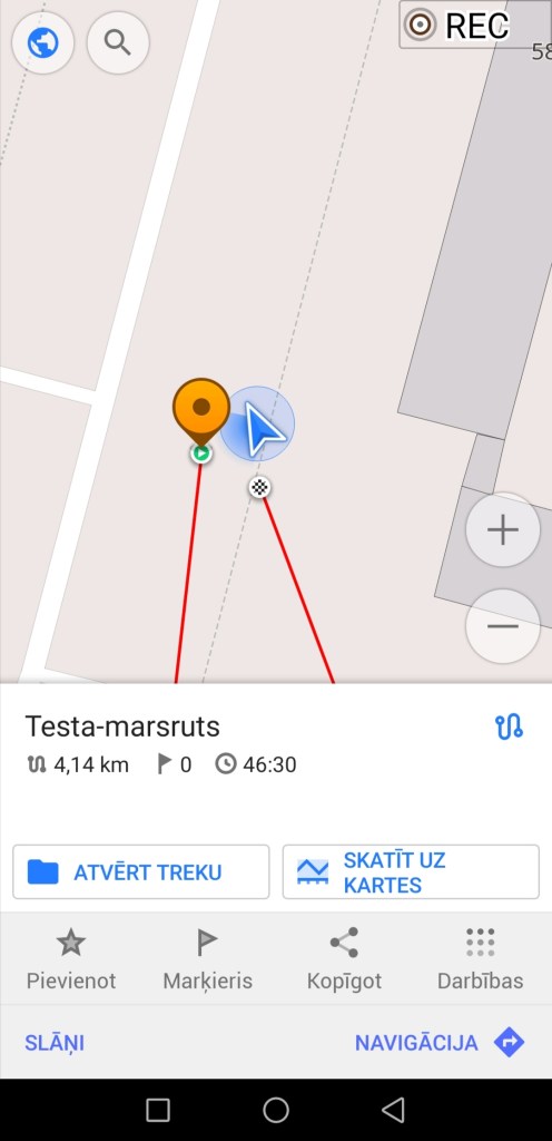 Rādīšu divus veidus, kā to izdarīt (izvēle atkarīga no jūsu gaumes). Atceries, ka jebkuram ierakstītam maršrutam var būt dažu metru precizitātes kļūda. Tieši tāda pati kļūda var būt jūsu atrašanās vietai, kas aplikācijā tiek apzīmēta ar zilu bultiņu.