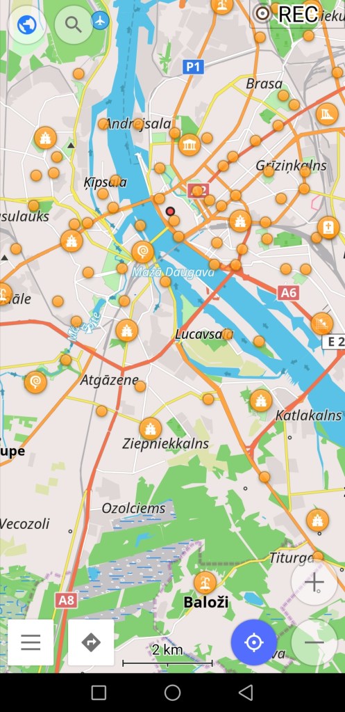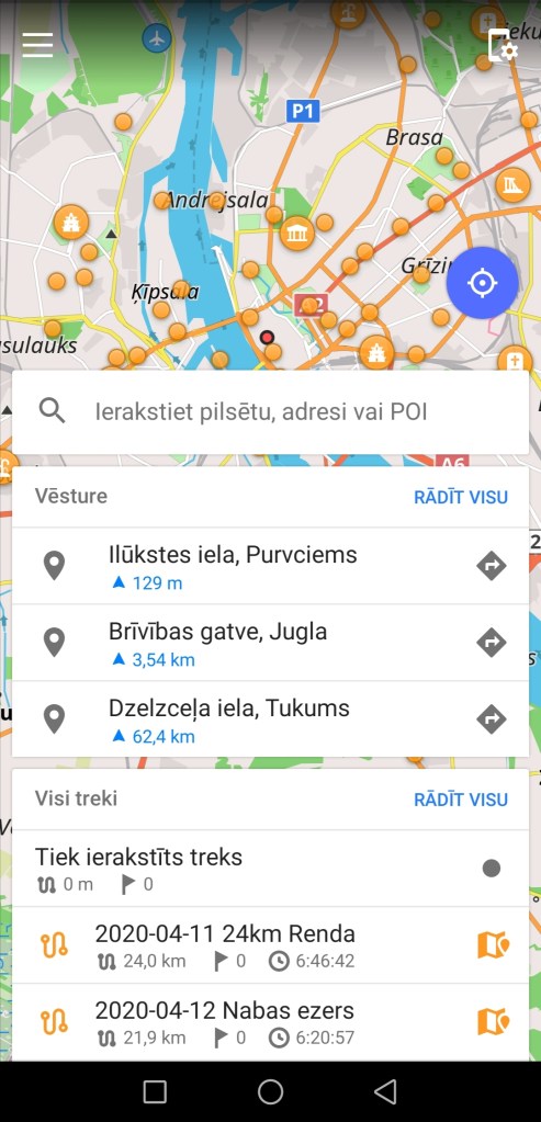 2) Šis veids vairāk piemērots tiem, kam patīk google maps un waze tipa navigācijas. Sākumā esiet pilnekrāna kartes stāvoklī, kur redzat savu ielādēto maršrutu.